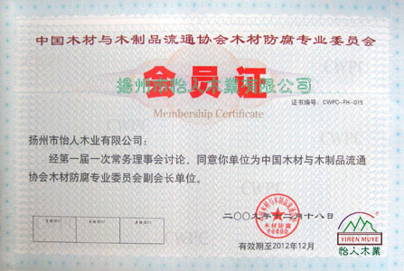 | 慶祝公司獲得中國木材與木制品流通協(xié)會木材防腐專業(yè)委員會的“會員證”! |