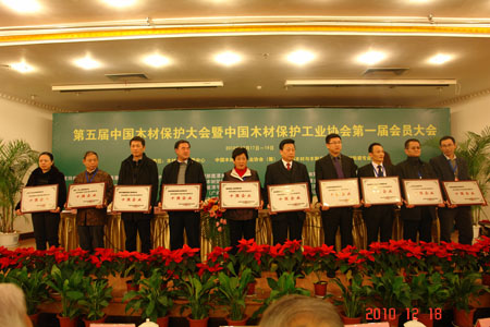 日前,在云南昆明召開的第五屆中國木材保護大會暨木材保護工業(yè)協(xié)會第一屆會員大會圓滿落幕,會上頒發(fā)了“全國木材保護行業(yè)特殊貢獻專家”、“全國木材保護示范工程”、“2010年度中國木材防腐10強企業(yè)”、“2010年度中國木材保護工業(yè)知名品牌企業(yè)”等各獎項的榮譽證書,我公司收獲頗豐,公司代表還作了“銳意進取創(chuàng)品牌 與時俱進爭發(fā)展”的演講,獲得了廣泛贊譽。