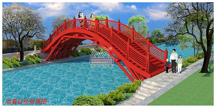 “紅橋飛跨水當(dāng)中,一字欄桿九曲紅。”詩(shī)句中的紅橋源于明末清初詩(shī)人王士禎二十首《冶春絕句》其中流傳最廣的一首。 2022年百年老字號(hào)揚(yáng)州冶春茶社對(duì)茶社進(jìn)行全面的改造提升,為了復(fù)原當(dāng)年冶春紅橋盛景,經(jīng)過(guò)多方考察篩選,最終選擇由我公司負(fù)責(zé)建造紅橋。紅橋的木拱結(jié)構(gòu)采用北宋年間《清明上河圖》中那座橫跨汴水的貫?zāi)竟昂鐦蛳嗤慕Y(jié)構(gòu),全木榫連接,橋長(zhǎng)16米寬3.7米,選用印尼進(jìn)口菠蘿格材質(zhì),經(jīng)烘干后真空加壓防腐處理工藝,大大延長(zhǎng)了木材在室外使用年限,正常使用和維護(hù)下至少保證100年不腐爛。木拱橋制作過(guò)程中,冶春領(lǐng)導(dǎo)和工程相關(guān)負(fù)責(zé)人員十分關(guān)心木橋工藝和質(zhì)量,多次詢(xún)問(wèn)并到工廠關(guān)心制作過(guò)程。