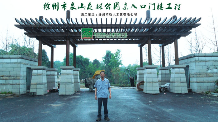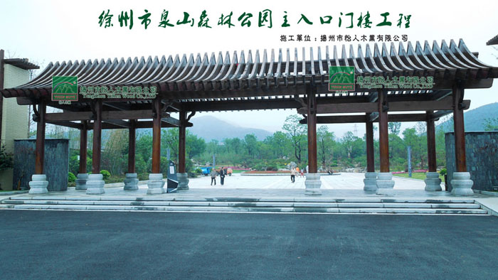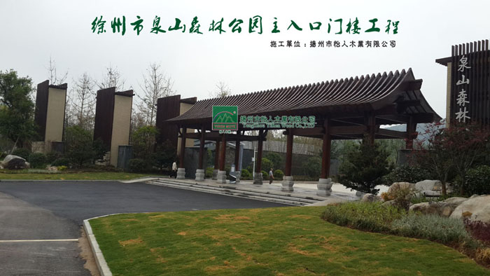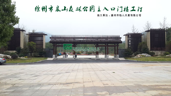 | 泉山森林公園敞園改造工程菠蘿格防腐木門樓工程 |